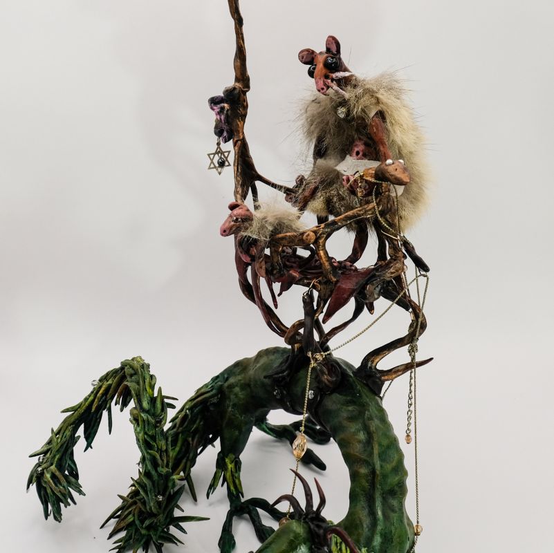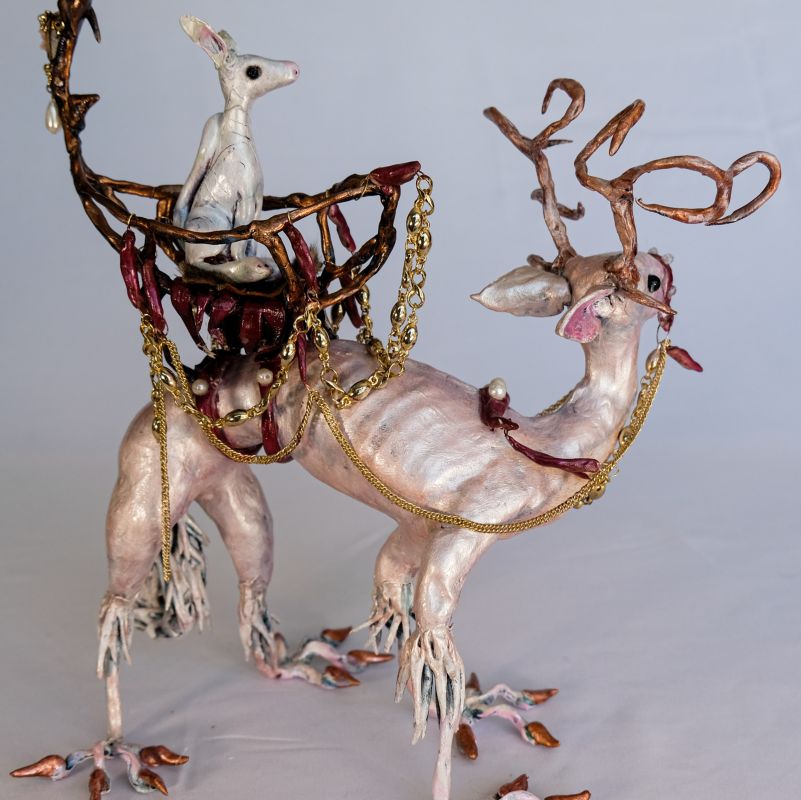 I am a Dunedin artist creating fantasy bird and animal figurines, wall hung sculptures and masks largely from polymer and air-dry clays and recycled jewelry. The handmade aspect and space for imagination is important for me, as is the joy in making art. My work reflects my love of nature, twisted vines and trees, mosses, animals, birds, insects and an interest in stories, mythology and fantasy.