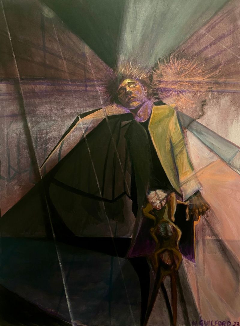 My work's influence is drawn from many places, both extraordinary and quotidian, and so it is difficult to align to any one style. However, in a historical sense, they contain elements of cubism and expressionism. More or less, I enjoy melding abstract and realist "portraiture".